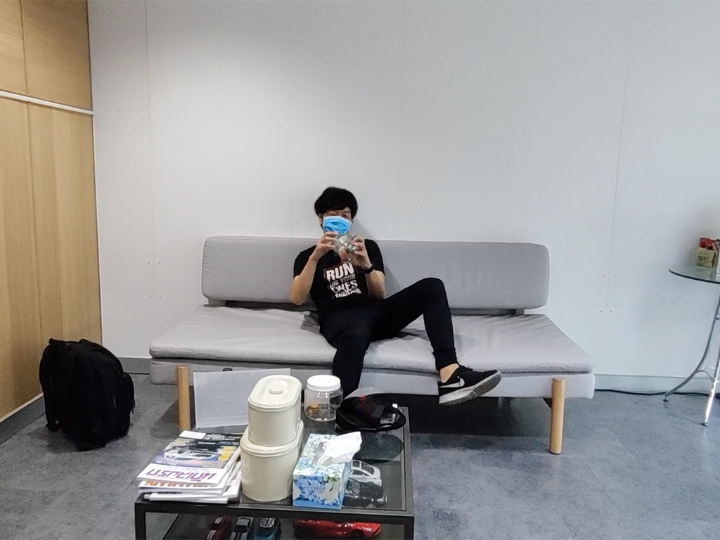 พอตกลงเลือกแล้วส่งกุญแจรถให้พนักงาน พนักงานก็อบฆ่าเชื้อรถ เนื่องจากช่วงไปทำ covid-19 ก็เริ่มระบาดแล้ว พนักงานติดตั้งจะได้ปลอดภัยถ้าหากมีเชื้อ จากนั้นพนักงานก็จัดแจงนำรถไปจอดในห้อง Lab ติดฟิล์มโดยเฉพาะ ซึ่งห้อง Lab นี้จะค่อนข้างมีกลิ่น ฉะนั้น ถ้าไม่ได้อยากถ่ายรูปอะไรก็ดูห่าง ๆ ผ่านกระจกก็ได้ครับ ในห้องก็จะมีเครื่องฟอกอากาศเครื่องใหญ่มากในนั้นด้วย