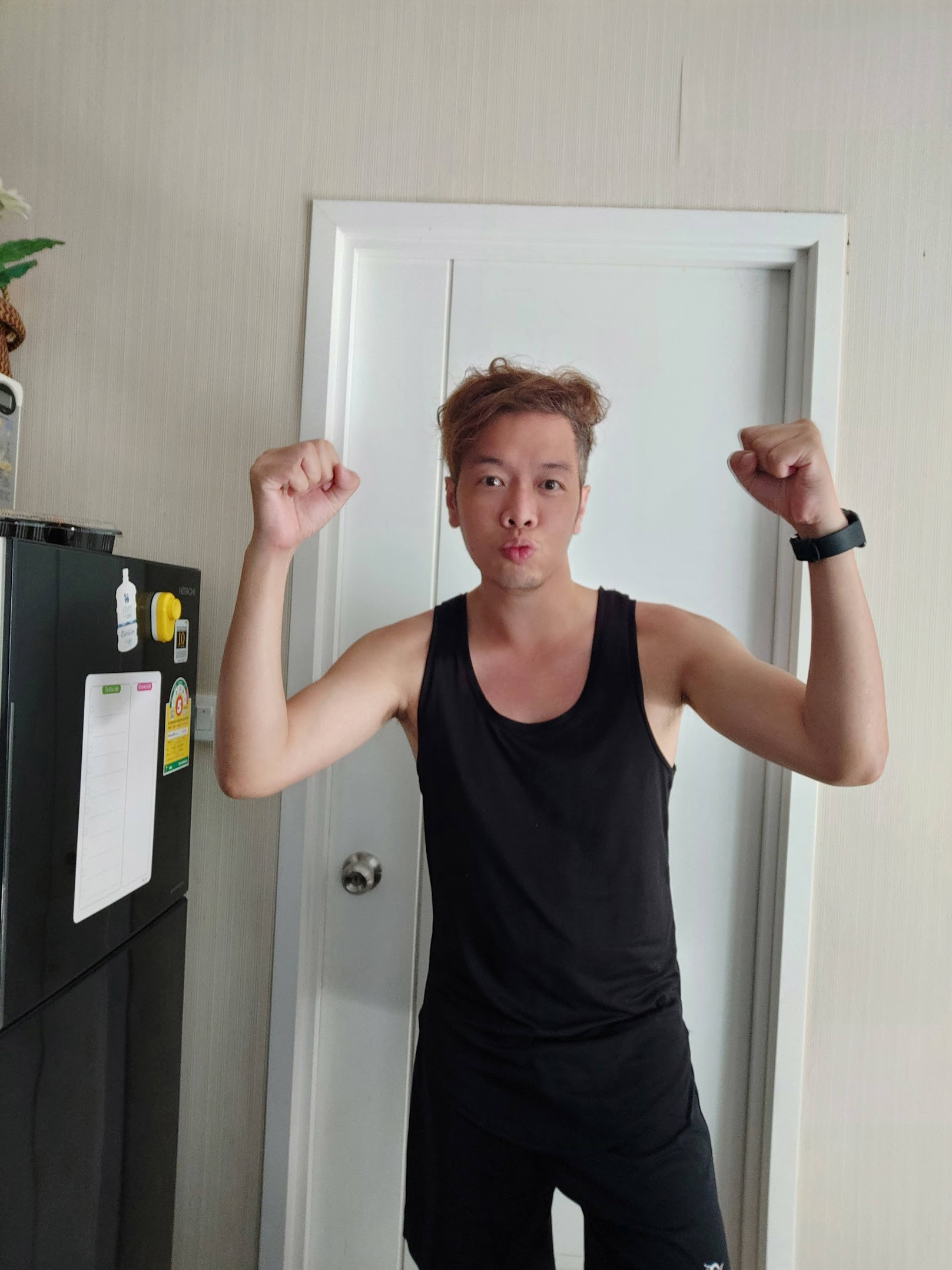 - ออกกำลังกาย ซึ่งก็ยอมรับว่าไม่ได้เน้นออกกำลังกายมาก แต่ก็จะพยายามออกกำลังกายถ้ามีเวลาว่าง