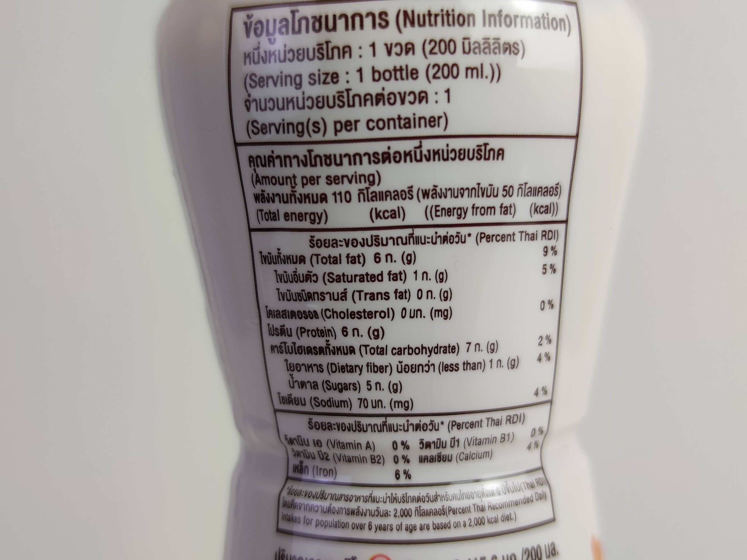 เห็นขวดเล็ก ๆ แบบนี้สารอาหารก็มีไม่น้อยนะครับ เพราะซังซัง เป็นนมถั่วเหลืองคั้นสด ดื่มขวดเดียวก็อิ่มท้องแล้ว